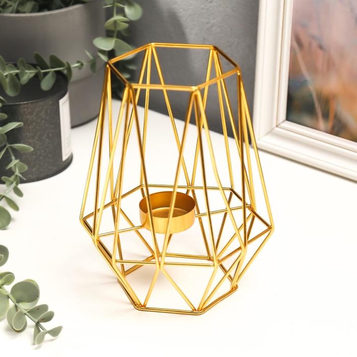 Подсвечник металл на 1 свечу "Геометрия" золото 17х12,5х14 см