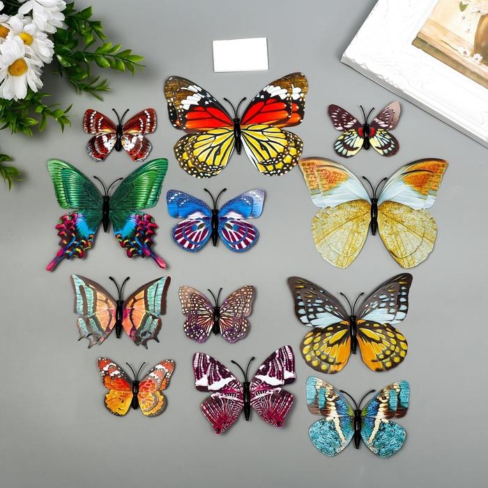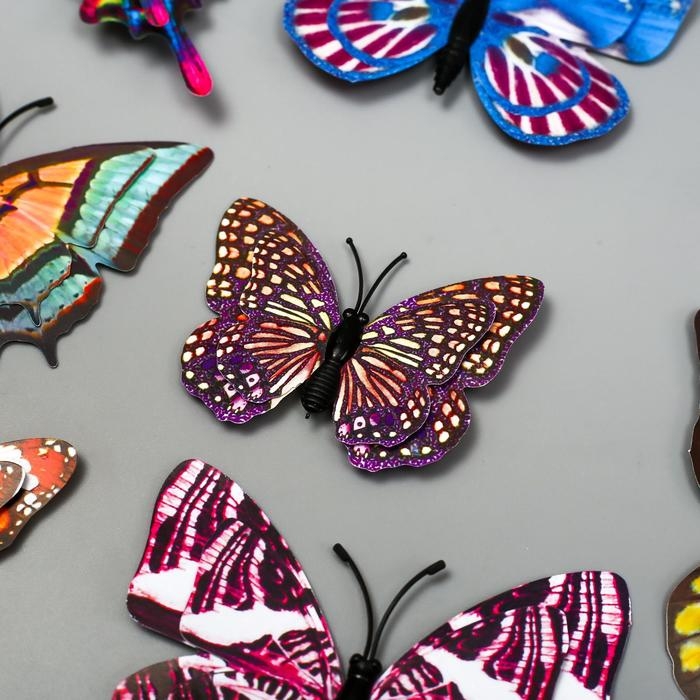 Магнит пластик "Бабочки двойные крылья фосфорные" набор 12 шт