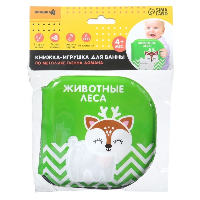 Книжка - игрушка для ванны «Животные леса», водная раскраска, по методике Гленна Домана, Крошка Я