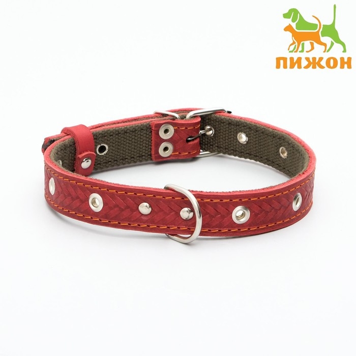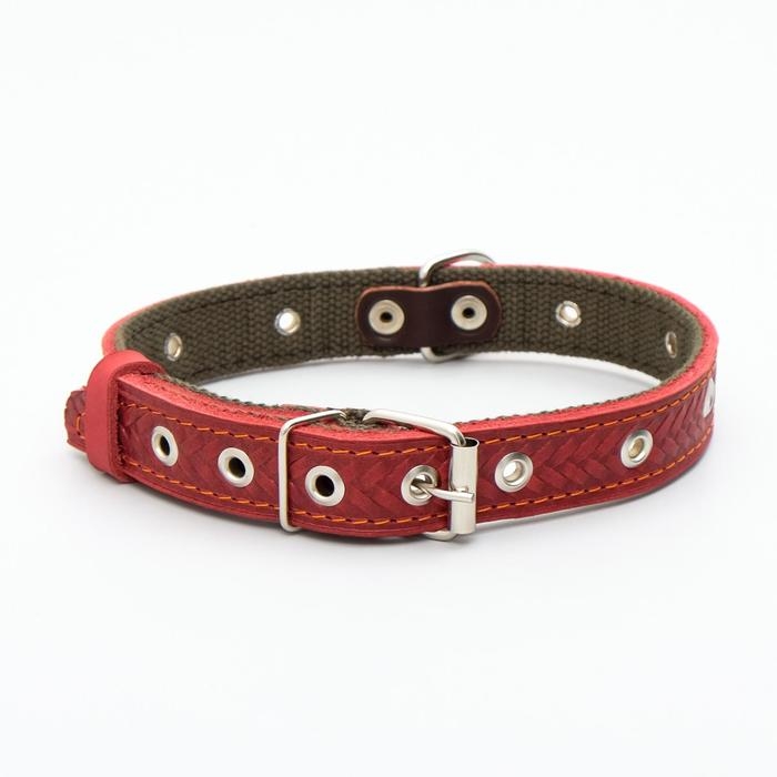 Ошейник комбинированный кожа/брезент, безразмерный, 56 х 2,5 см, ОШ 25-51 см, красный