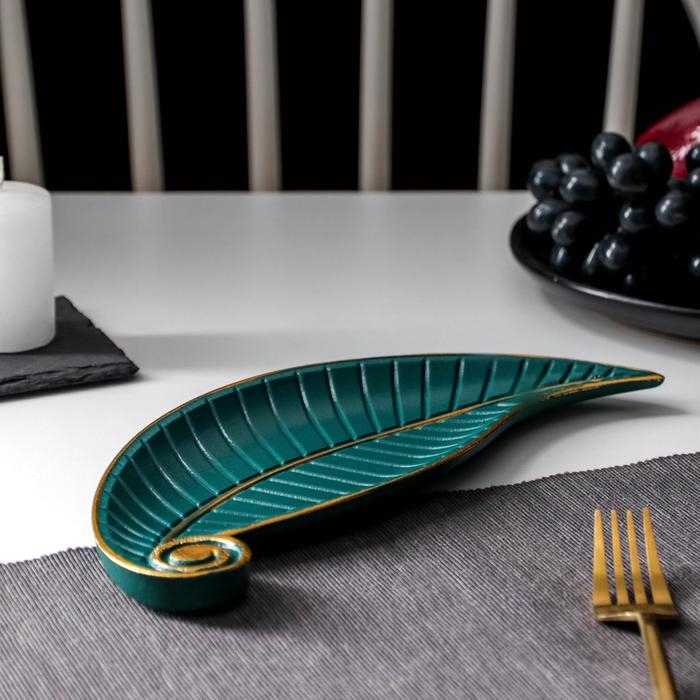 Блюдо для фруктов Доляна «Винтажный лист», 27×10,5×1,5 см, цвет зелёный
