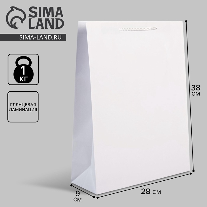 Пакет подарочный ламинированный, упаковка, «Белый», L 28 х 38 х 9 см
