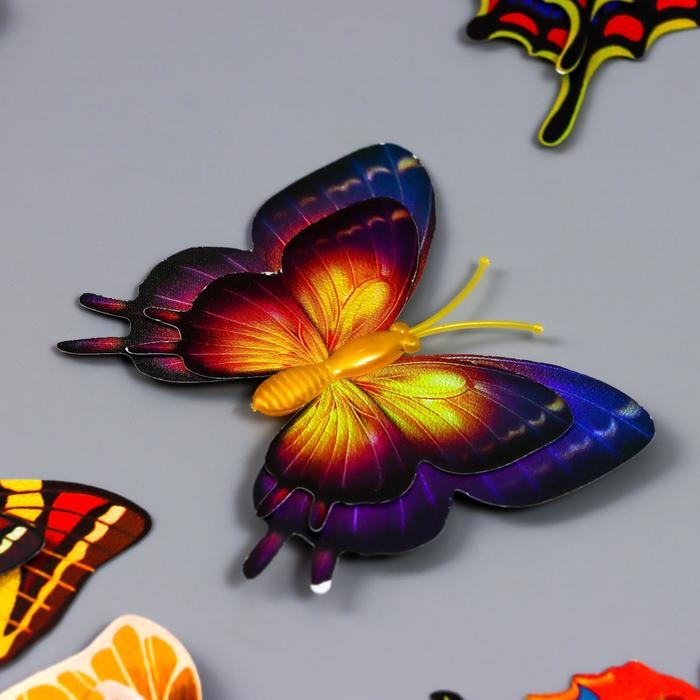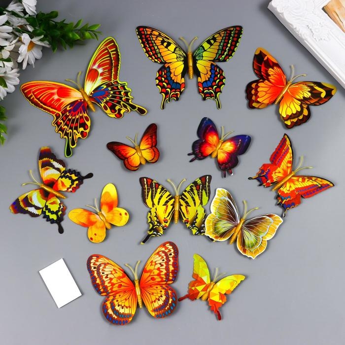 Магнит пластик "Бабочка двойные крылышки - золотой блеск" н-р 12 шт h=5; 6; 7; 8; 9,5 см