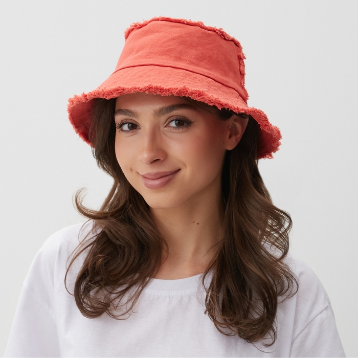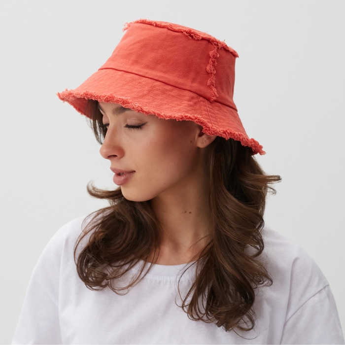 Панама женская джинсовая с необработанными краями MINAKU цвет оранжевый, р-р 56-58