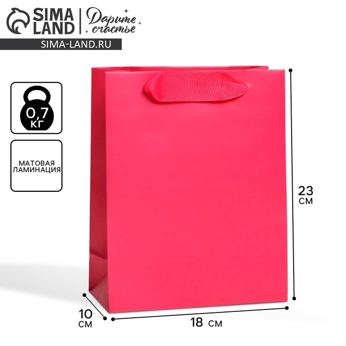 Пакет подарочный ламинированный, упаковка, «Фуксия», MS 18 х 23 х 10 см