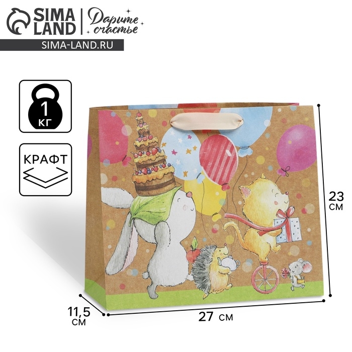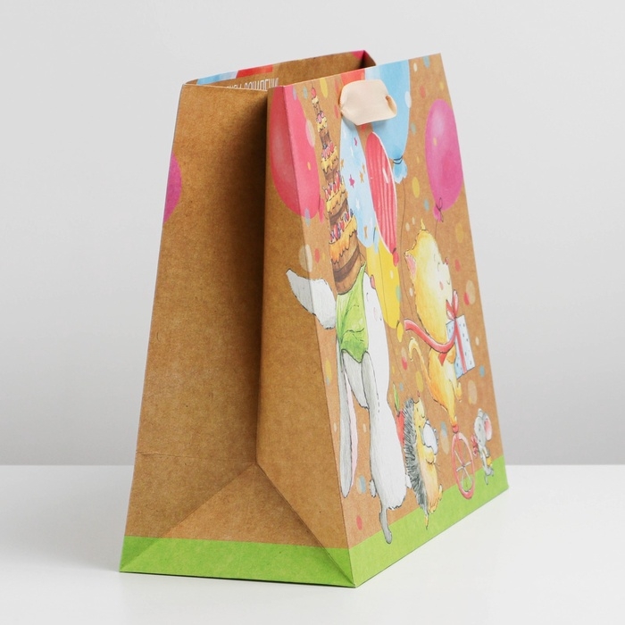 Пакет подарочный крафтовый горизонтальный, упаковка, «Малыши», ML 23 х 27 х 11.5 см