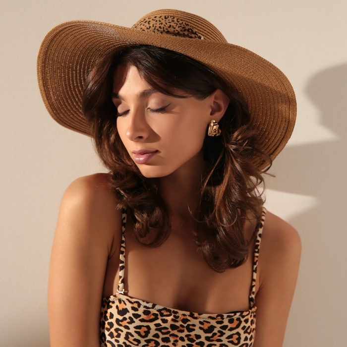 Шляпа женская MINAKU "Leopard" цвет бежевый, р-р 56-58