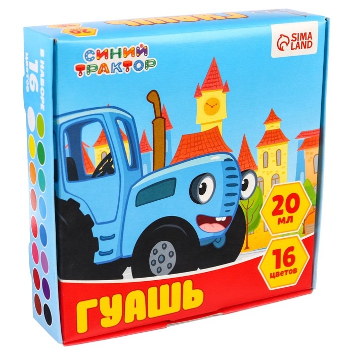 Гуашь 16 цветов по 20 мл, Синий трактор