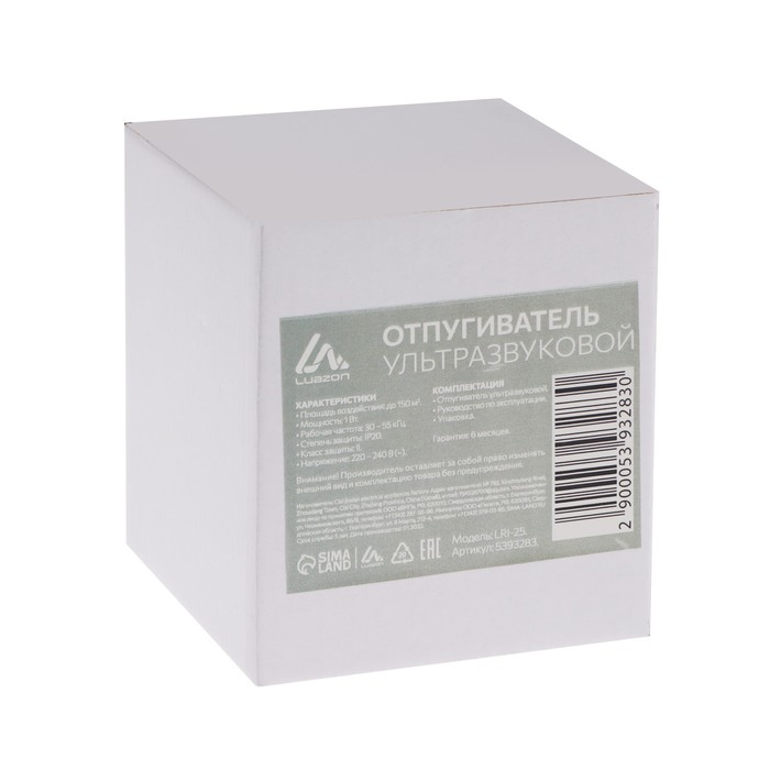 Отпугиватель крыс и насекомых Luazon LRI-11, ультразвуковой, 70 м2, 220 В, белый
