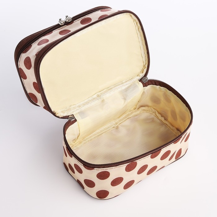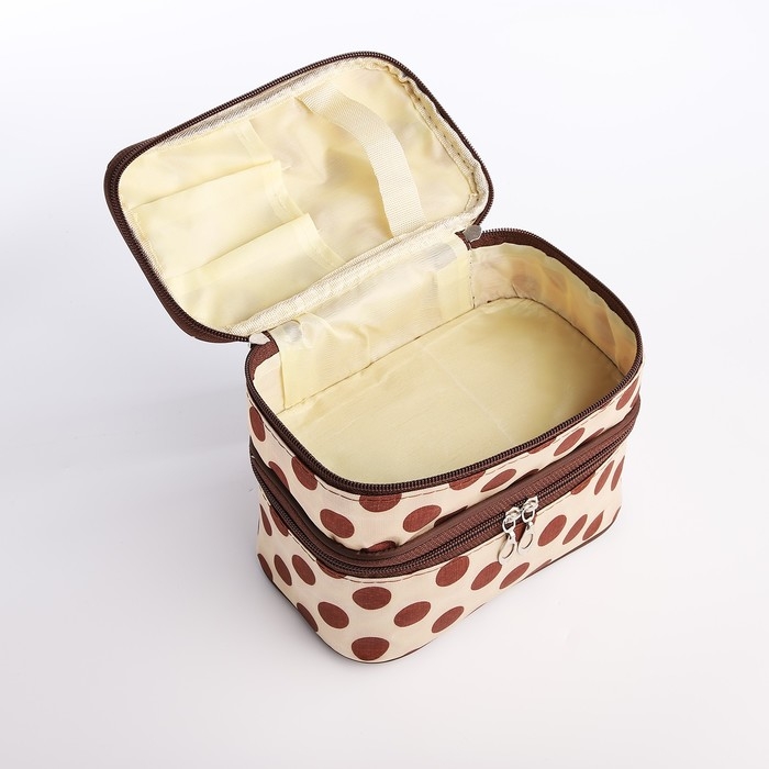 Косметичка, 2 отдела на молниях, цвет бежевый/коричневый