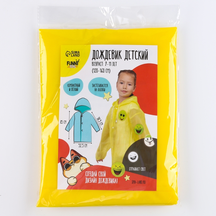 Дождевик детский со светоотражающими элементами, цвет жёлтый (120-160 см)