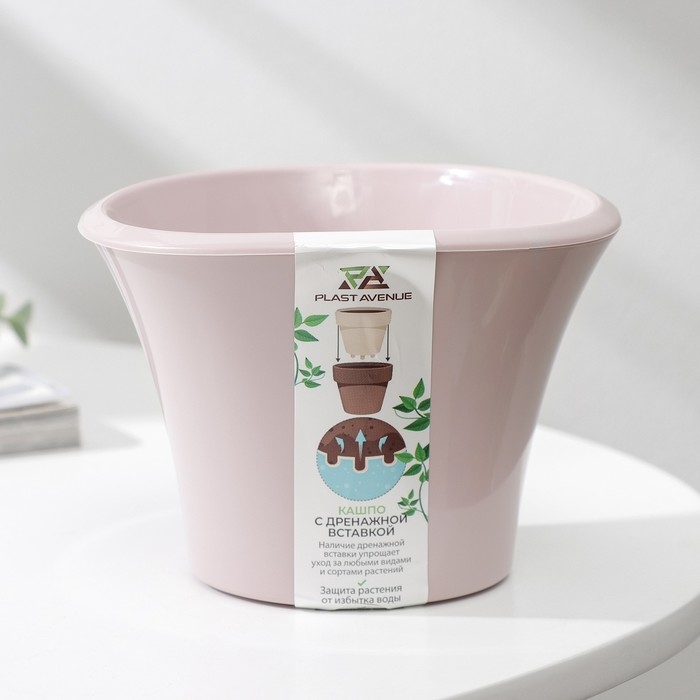 Кашпо для цветов со вставкой «Лагуна», 600 мл, d=13 см, h=9 см, цвет розовый