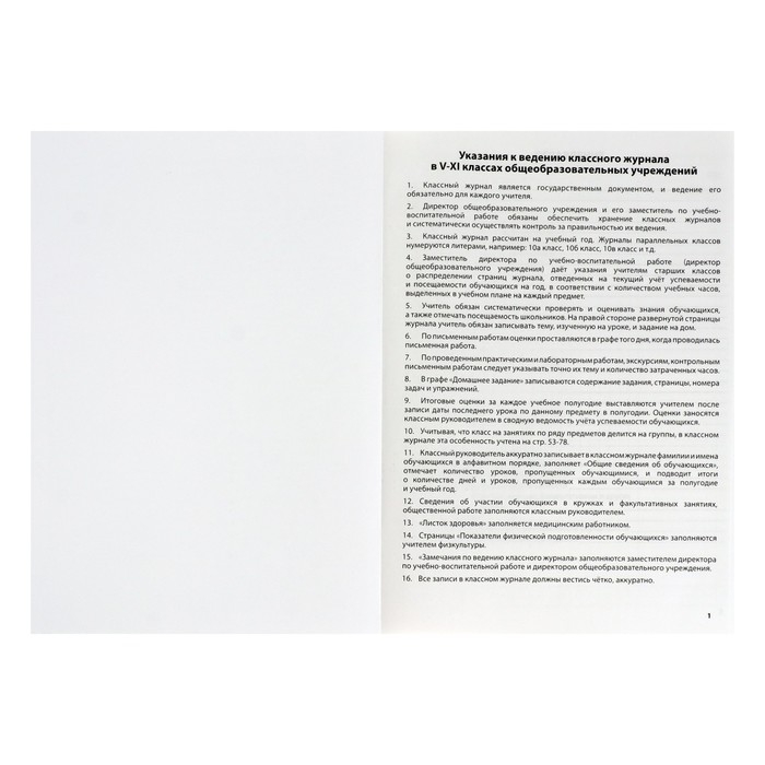 Классный журнал для 5-11 классов А4, 96 листов, твёрдая обложка, белый блок