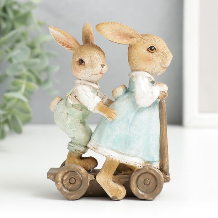 Сувенир полистоун "Зайчики на самокате" 11,5х4х8,5 см