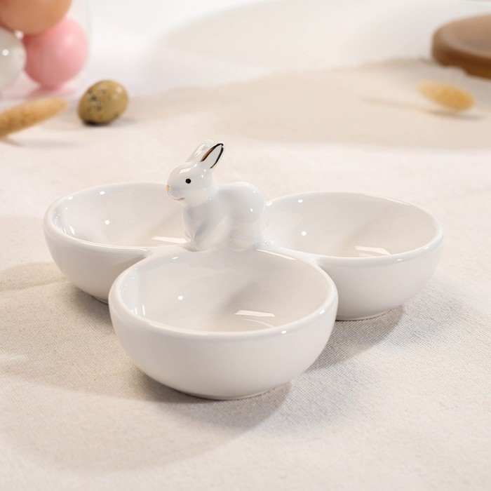 Менажница 3 ячейки Доляна «Зайка в золотом», 16,5×9 см, цвет белый