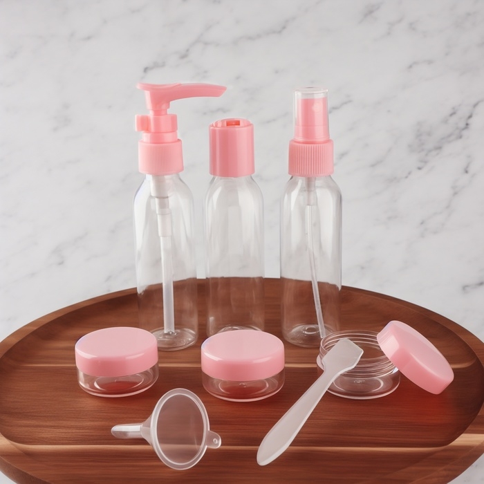 Набор для хранения, в футляре, 9 предметов, цвет прозрачный/розовый