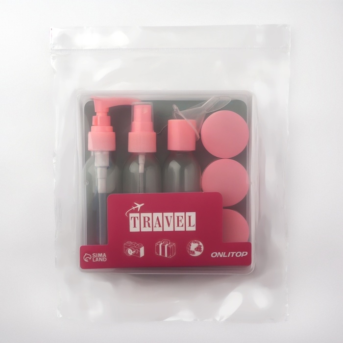 Набор для хранения, в чехле, 9 предметов, цвет прозрачный/розовый