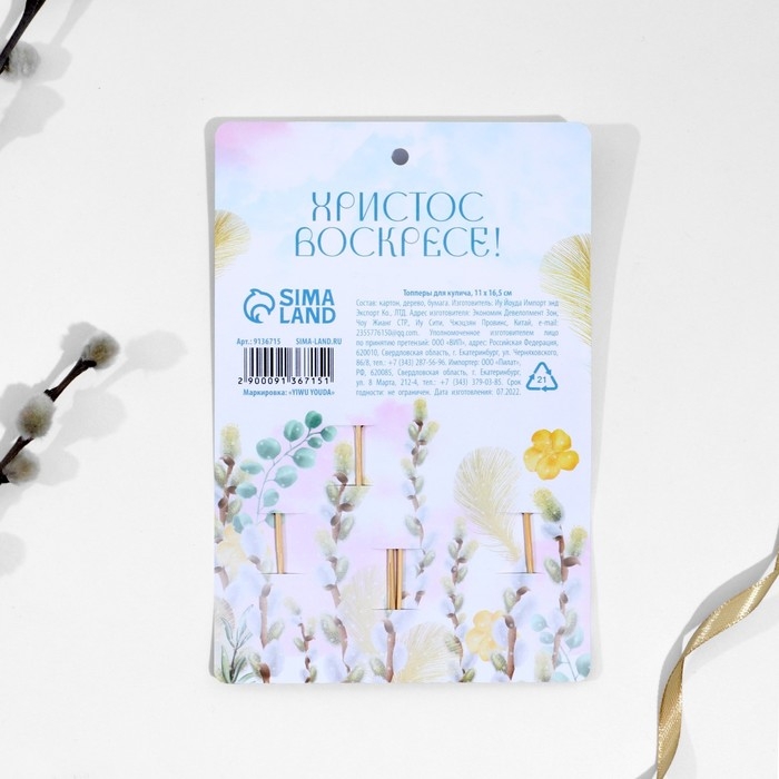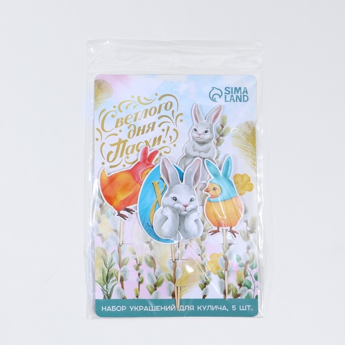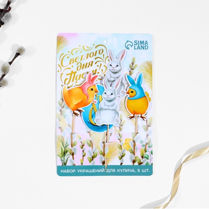 Набор для украшения кулича «Светлого дня Пасхи!» на пасху, 5,4 х 4,3 см