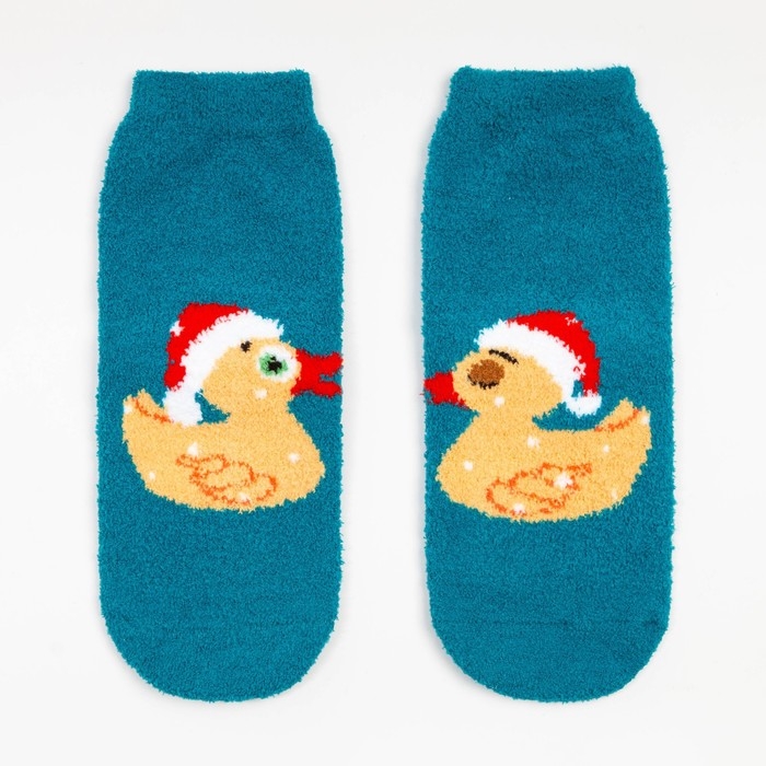 Носки женские новогодние махровые «Уточки», цвет голубой, размер 36-40