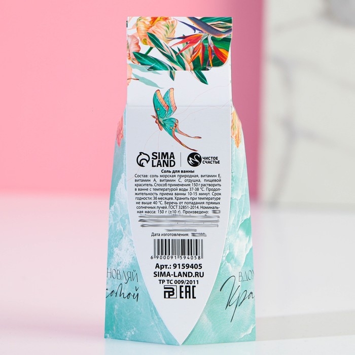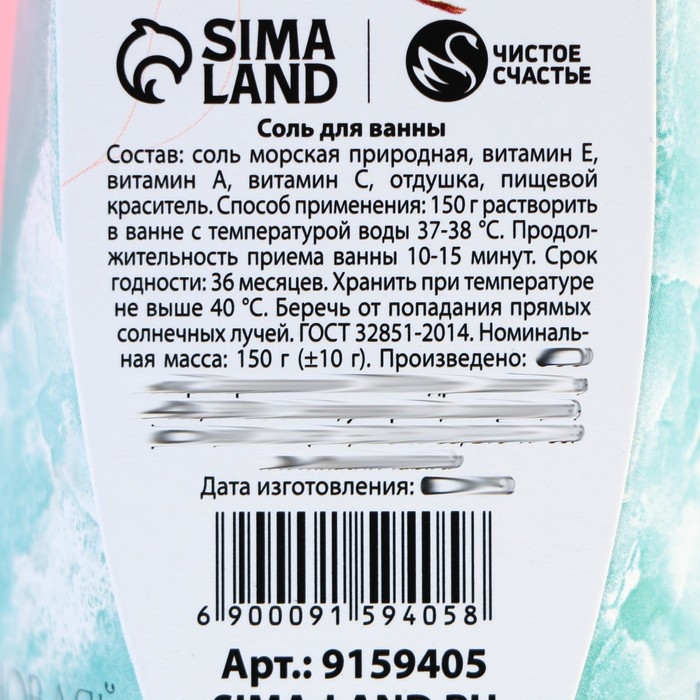 Соль для ванны ЧИСТОЕ СЧАСТЬЕ «С 8 Марта!», 150 г, аромат мятный бриз