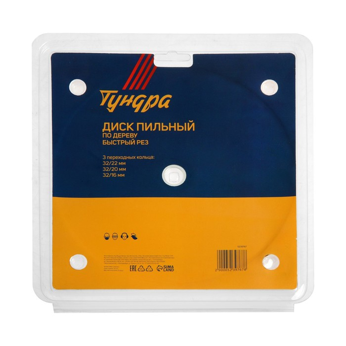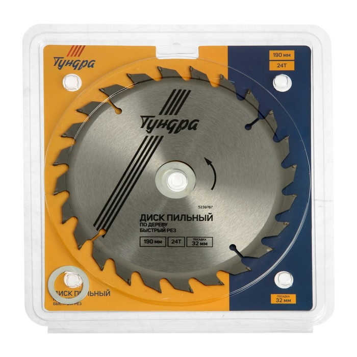 Диск пильный по дереву ТУНДРА, быстрый рез, 190 х 32 мм (кольца на 22,20,16), 24 зуба