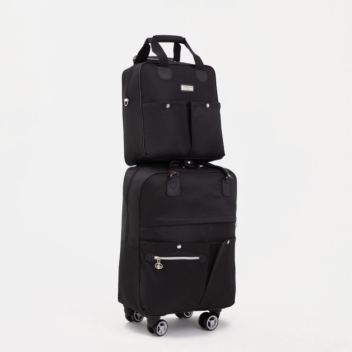 Сумка дорожная 2 в 1 на колёсах 20", отдел на молнии, 4 наружных кармана, цвет чёрный