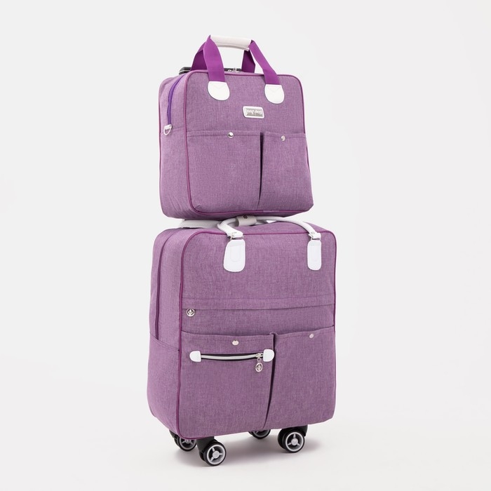 Сумка дорожная 2 в 1 на колёсах 20", отдел на молнии, 4 наружных кармана, цвет фиолетовый