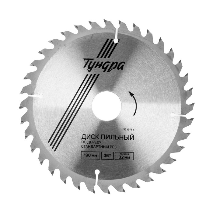 Диск пильный по дереву ТУНДРА, стандартный рез, 190 х 32 мм (кольца на 22,20,16), 36 зубьев