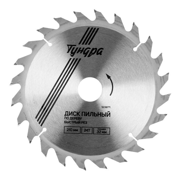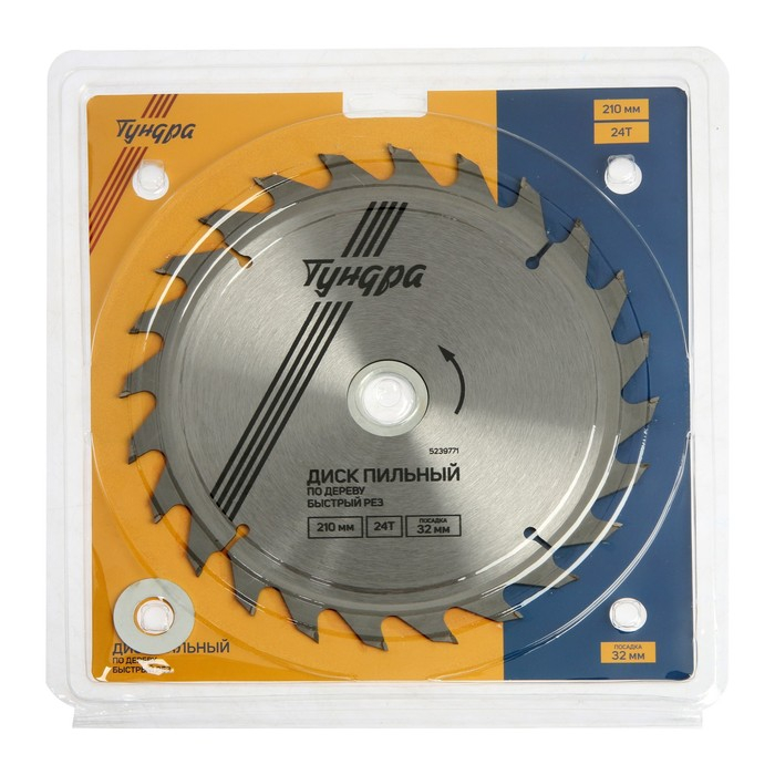 Диск пильный по дереву ТУНДРА, быстрый рез, 210 х 32 мм (кольца на 22,20,16), 24 зуба