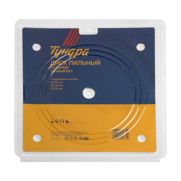Диск пильный по дереву ТУНДРА, точный рез, 250 х 32 мм (кольца на 22,20,16), 60 зубьев