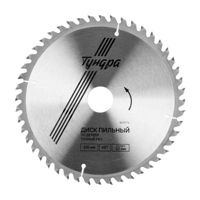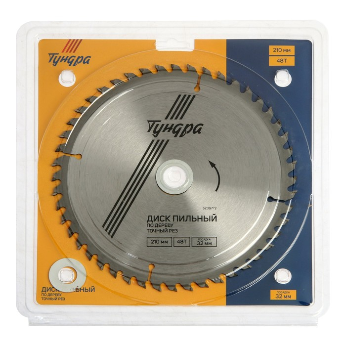 Диск пильный по дереву ТУНДРА, точный рез, 210 х 32 мм (кольца на 22,20,16), 48 зубьев