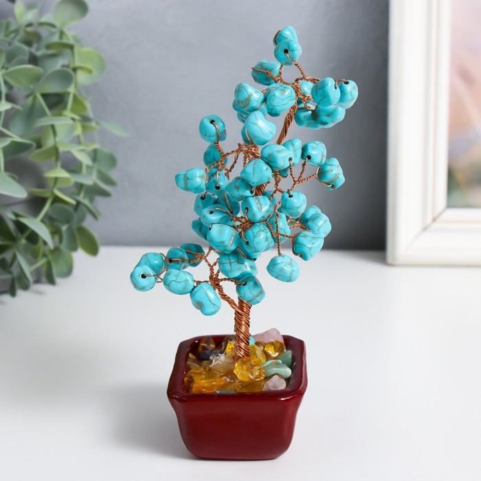 Сувенир бонсай "Денежное дерево с бирюзой" 60 камней 16х7,5х5,5 см