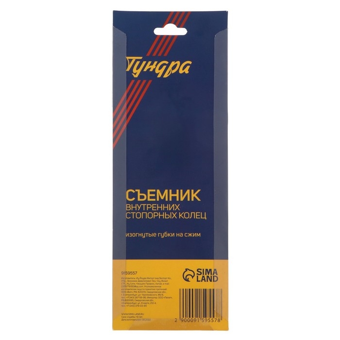 Съемник внутренних стопорных колец ТУНДРА, изогнутые губки на сжим, 150 мм