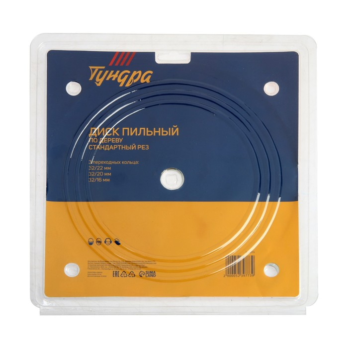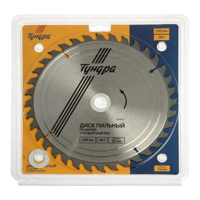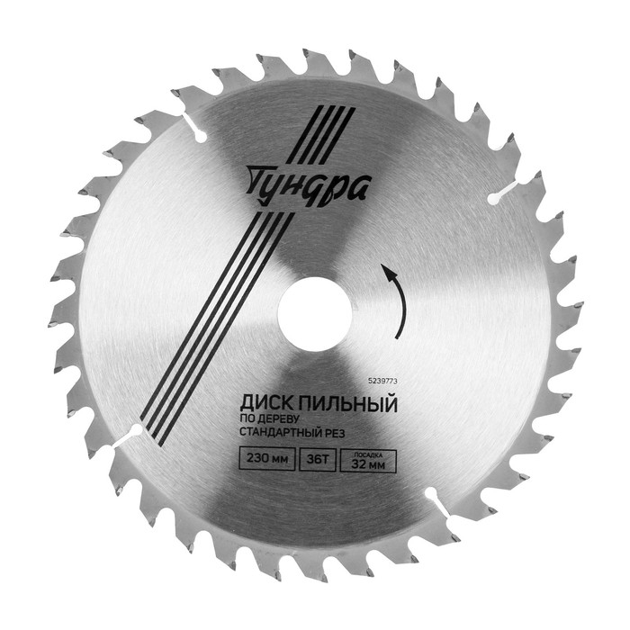 Диск пильный по дереву ТУНДРА, стандартный рез, 230 х 32 мм (кольца на 22,20,16), 36 зубьев