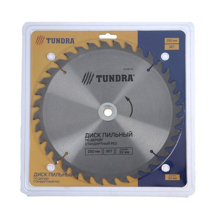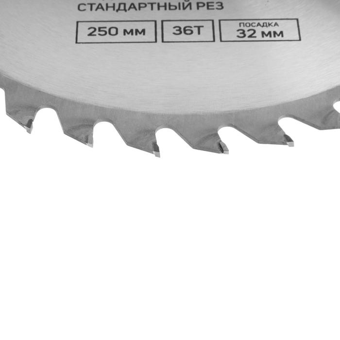 Диск пильный по дереву ТУНДРА, стандартный рез, 250 х 32 мм (кольца на 22,20,16), 36 зубьев