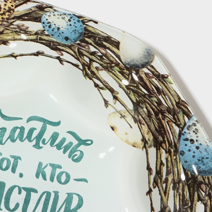 Подставка для яиц станет оригинальным решением для сервировки во время пасхальных торжеств и других пышных праздников. Посуда изготовлена из стекла и украшена тематическим рисунком. Классический дизайн изделия делает его гармоничным дополнением к любому варианту оформления стола.