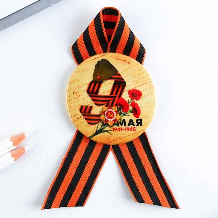 Значок деревянный с лентой «9 мая, орден», 6,1 х 8,2 см, георгиевская лента