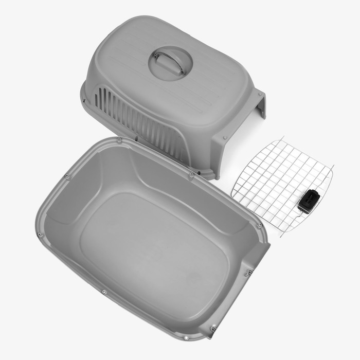 Переноска для животных с откидной прозрачной крышей 48х33х29,5 см, серая