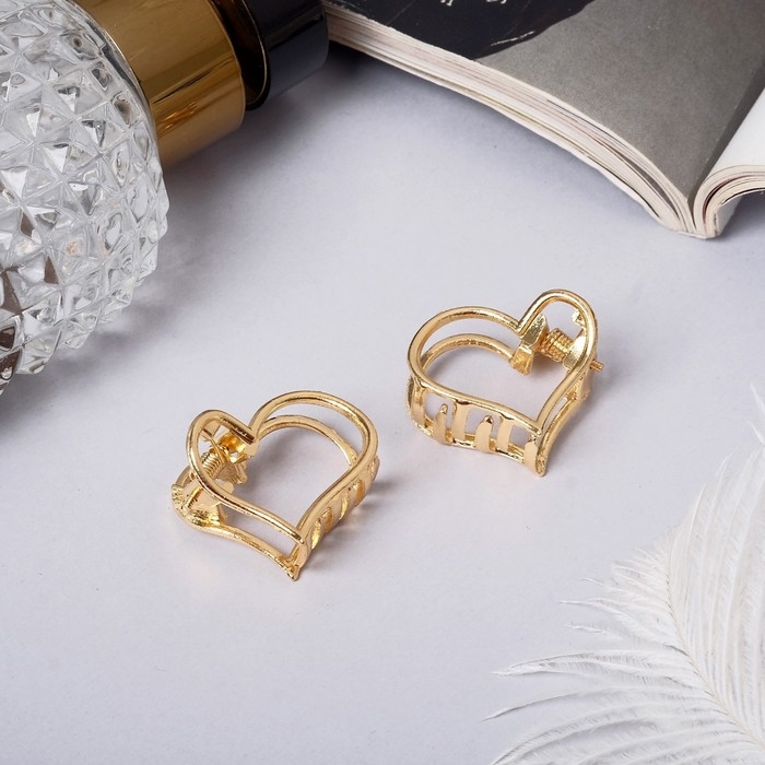 Краб для волос "Либерти" (набор 2 шт) сердце контур, 2 см, золото