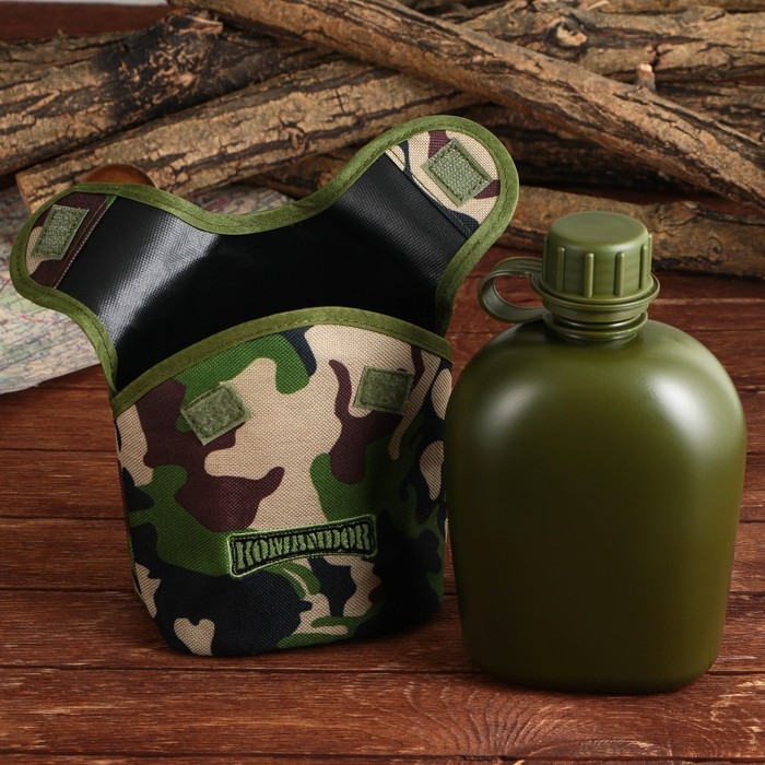 Фляга «Командор», пластик 1 л, камуфляж зеленый