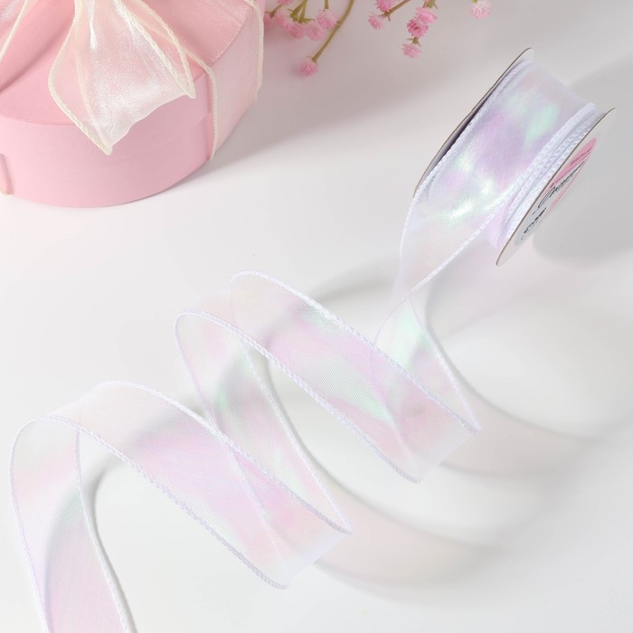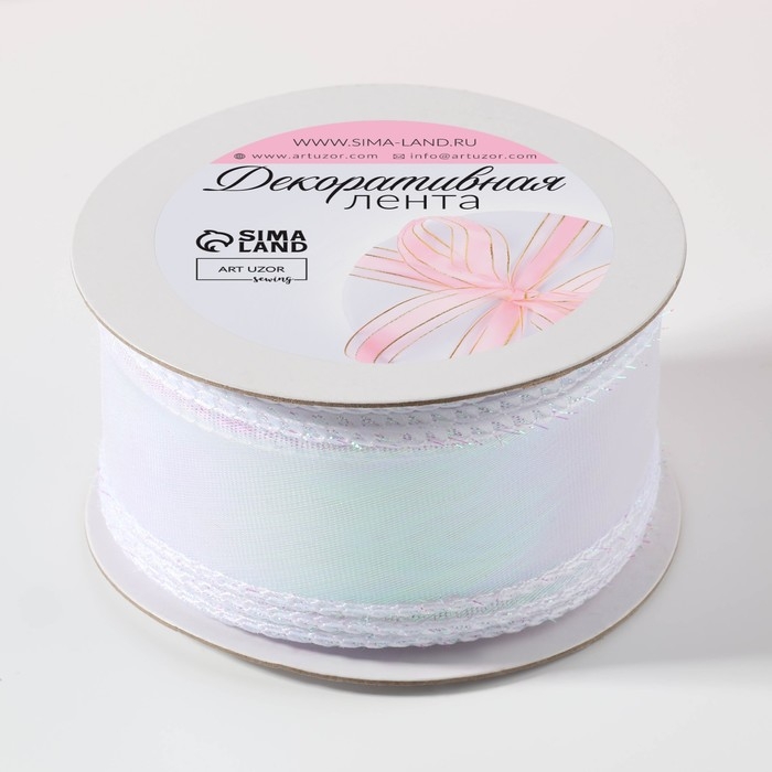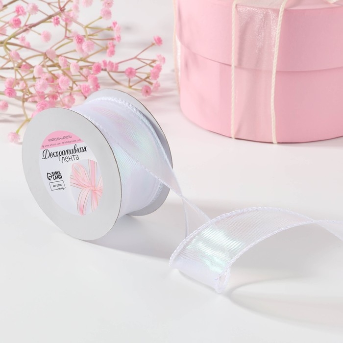Лента капроновая «Волна», с радужным переливом, 38 мм, 9,1 ± 0,5 м, цвет белый
