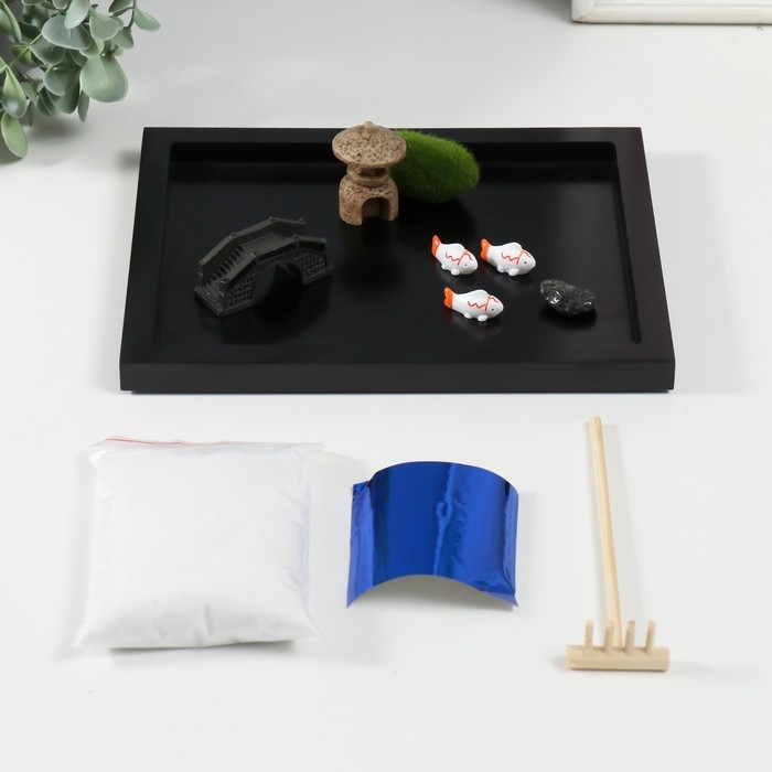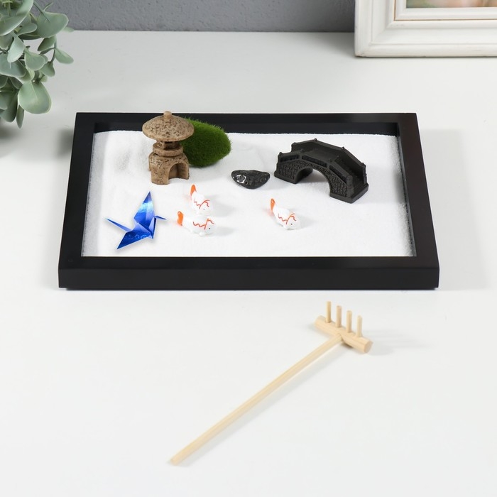 Сад камней Дзен "Мостик и оригами" белый песок 1,2х21,5х17,5 см
