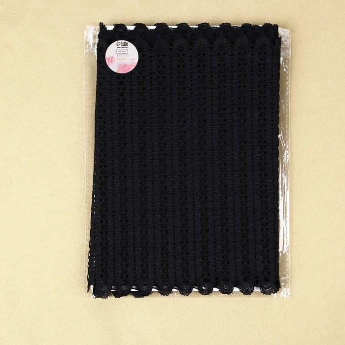 Кружевная эластичная ткань, 190 мм × 2,7 ± 0,5 м, цвет чёрный