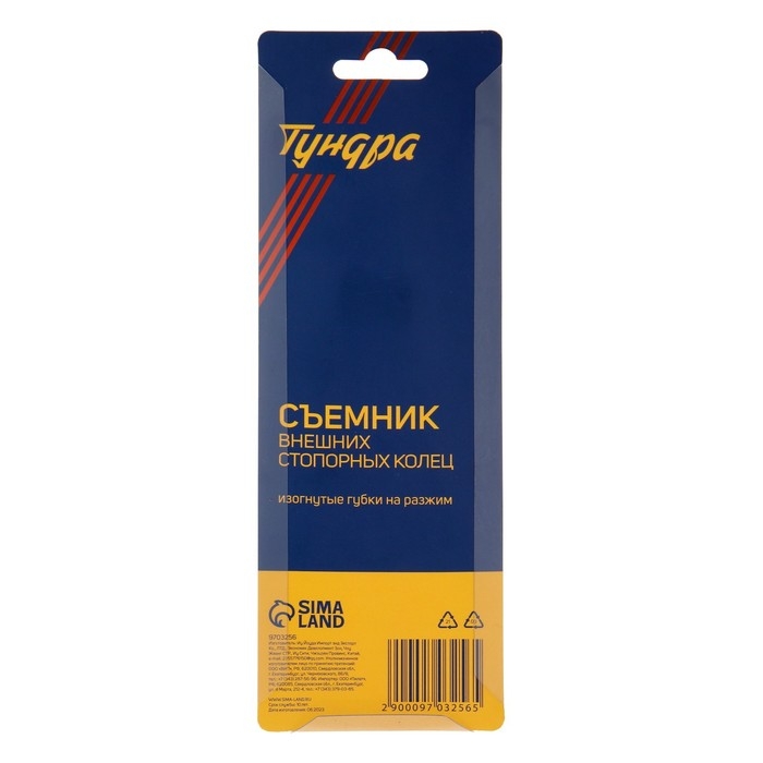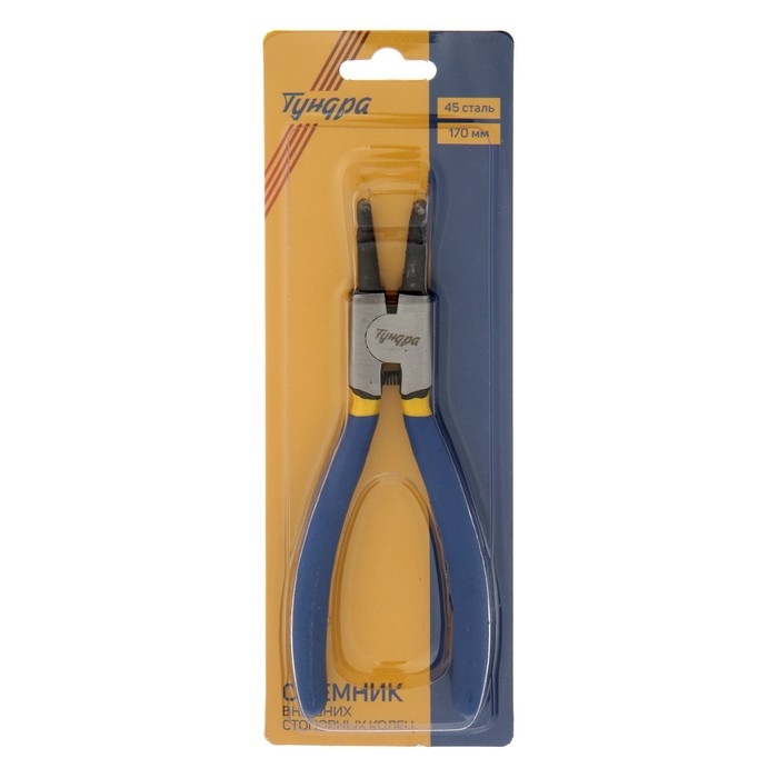 Съемник внешних стопорных колец ТУНДРА, изогнутые губки на разжим, 170 мм