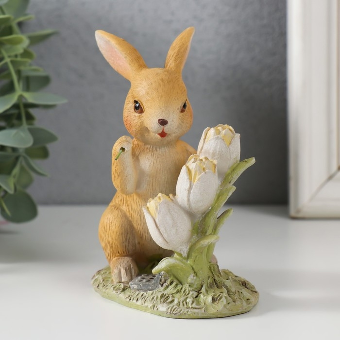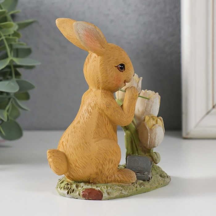 Сувенир полистоун "Зайчик на полянке с тюльпанами" 9,5х6х11 см
