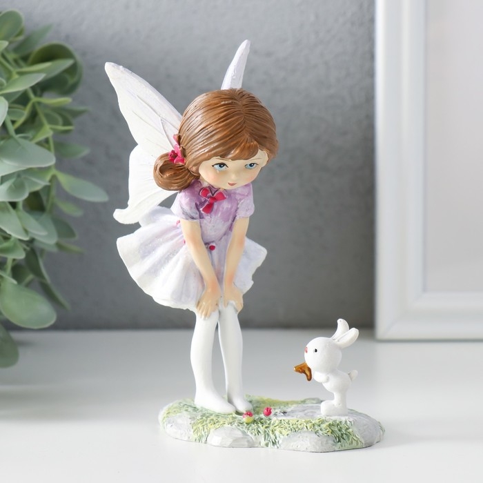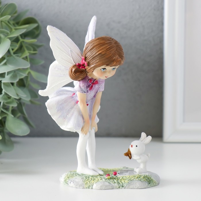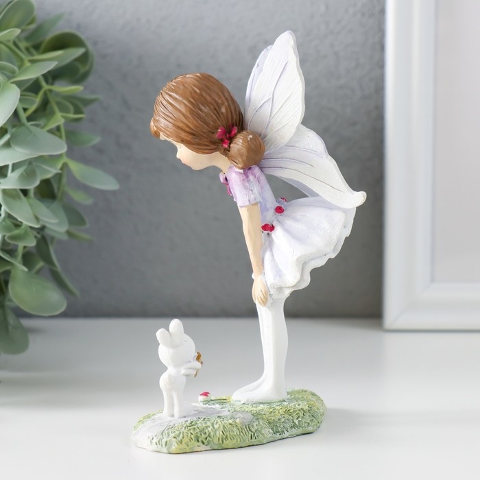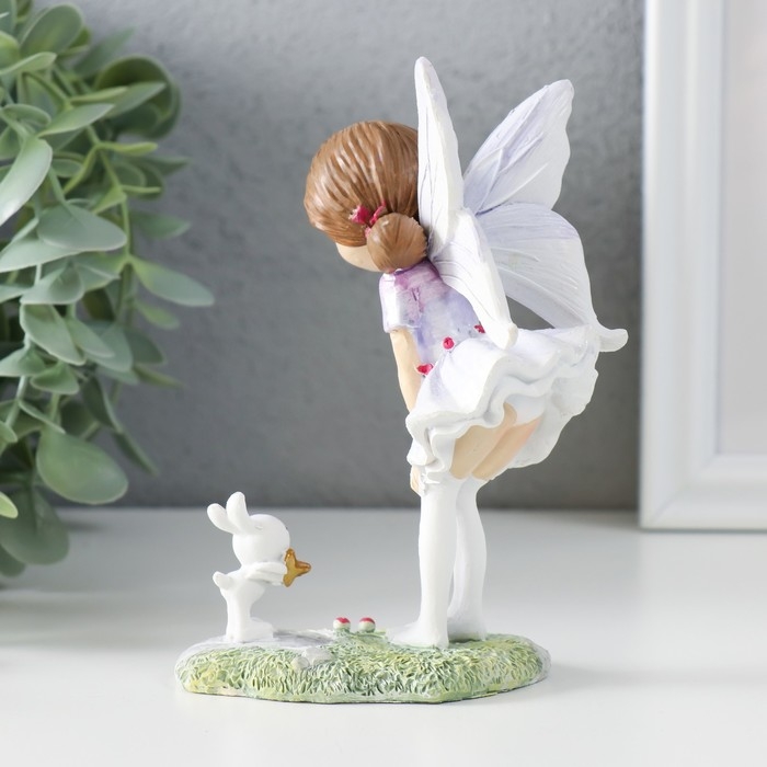 Сувенир полистоун "Девочка-бабочка с зайчиком на полянке" 9,5х6х13 см