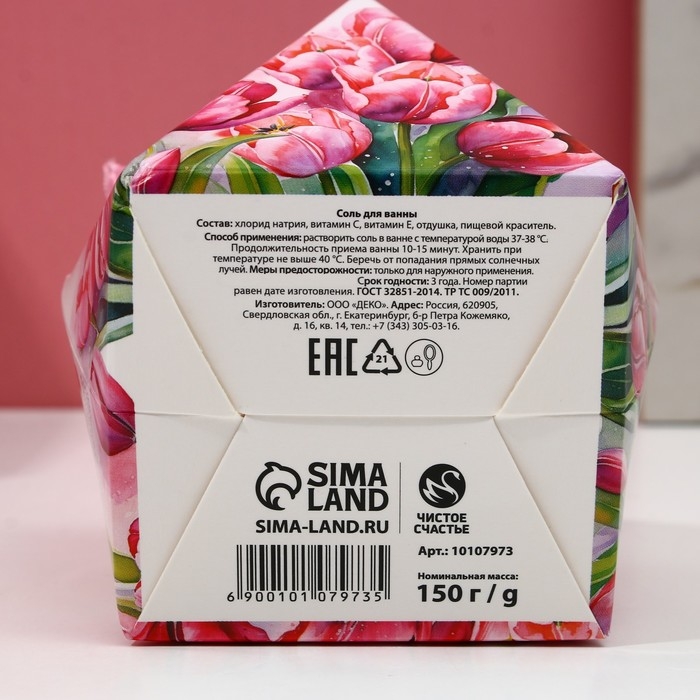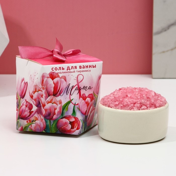 Соль для ванны «С 8 Марта!», 150 г, аромат малинового тирамису, ЧИСТОЕ СЧАСТЬЕ