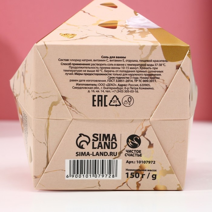 Соль для ванны «С 8 Марта!», 150 г, аромат французской ванили, ЧИСТОЕ СЧАСТЬЕ