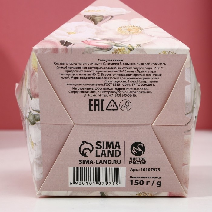 Соль для ванны ЧИСТОЕ СЧАСТЬЕ «С 8 Марта», 150 г, аромат цветочный