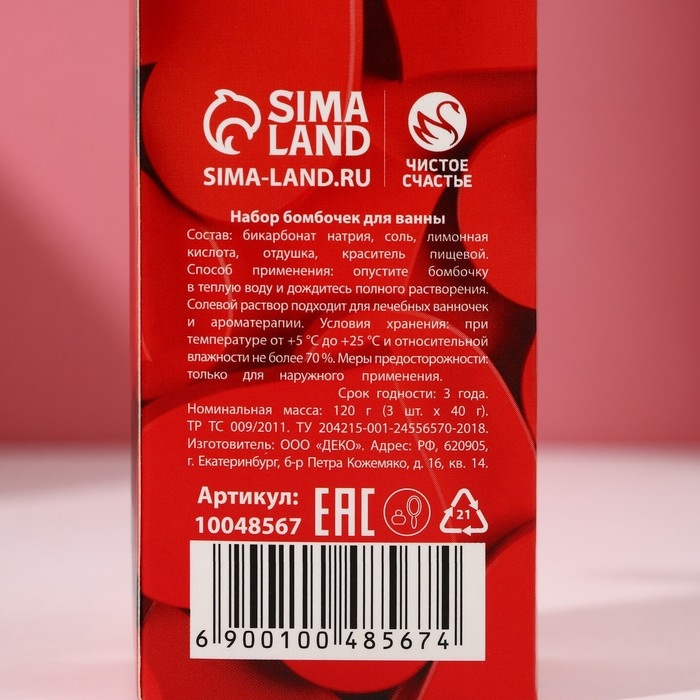 Набор бомбочки для ванны ЧИСТОЕ СЧАСТЬЕ «14 Февраля», 3х40 г